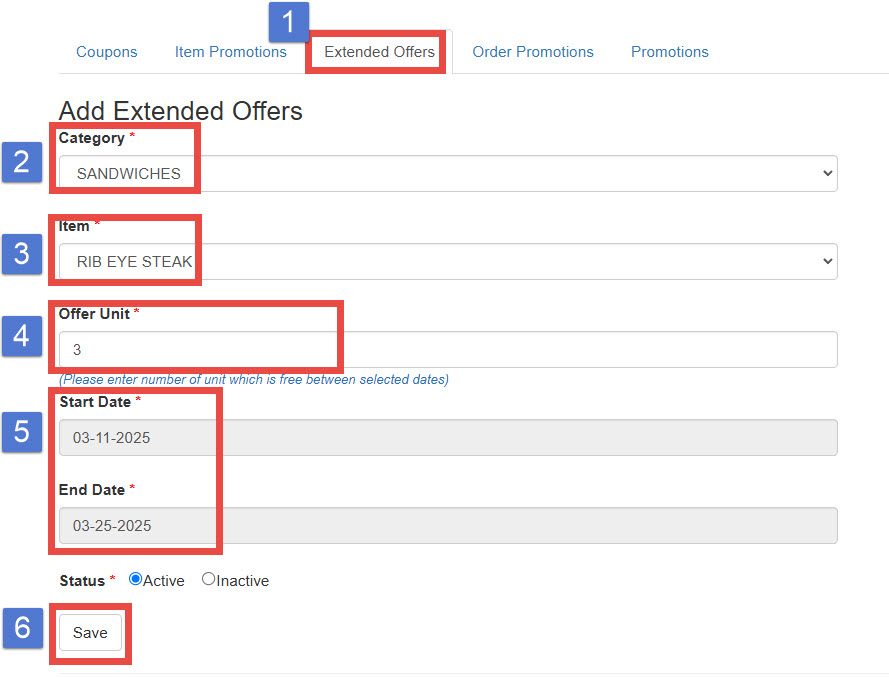4. Offer Unit: Enter the quantity of items that will be eligible for the promotion.