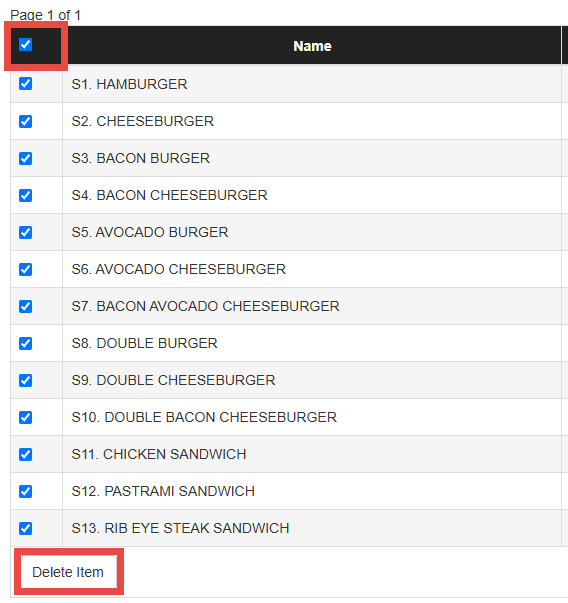 Before uploading the new menu file, make sure to select all previous menu items using the checkbox and then delete them from your online ordering website.