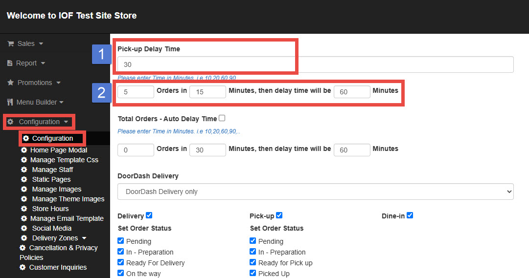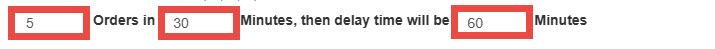 If 5 orders are received within 30 minutes, the pick-up delay will changes to 60 minutes.