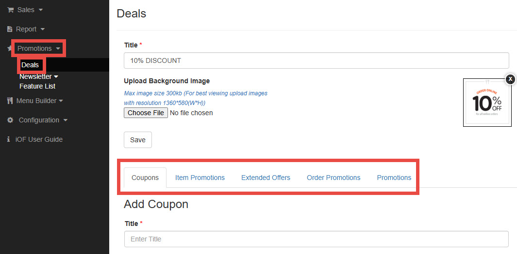 With iOrderFoods, you can create multiple loyalty programs for your customers under the Promotions category.